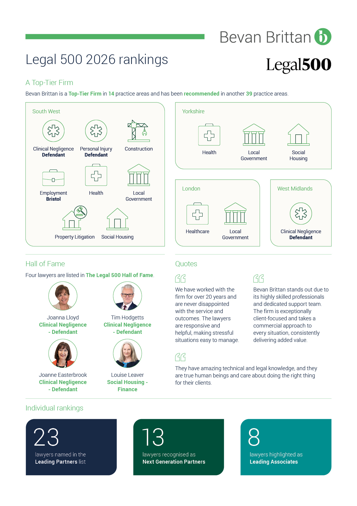 Thirteen of these practice areas have retained their Band 1 ranking for five consecutive years, underlining Bevan Brittan’s long-standing market strength: