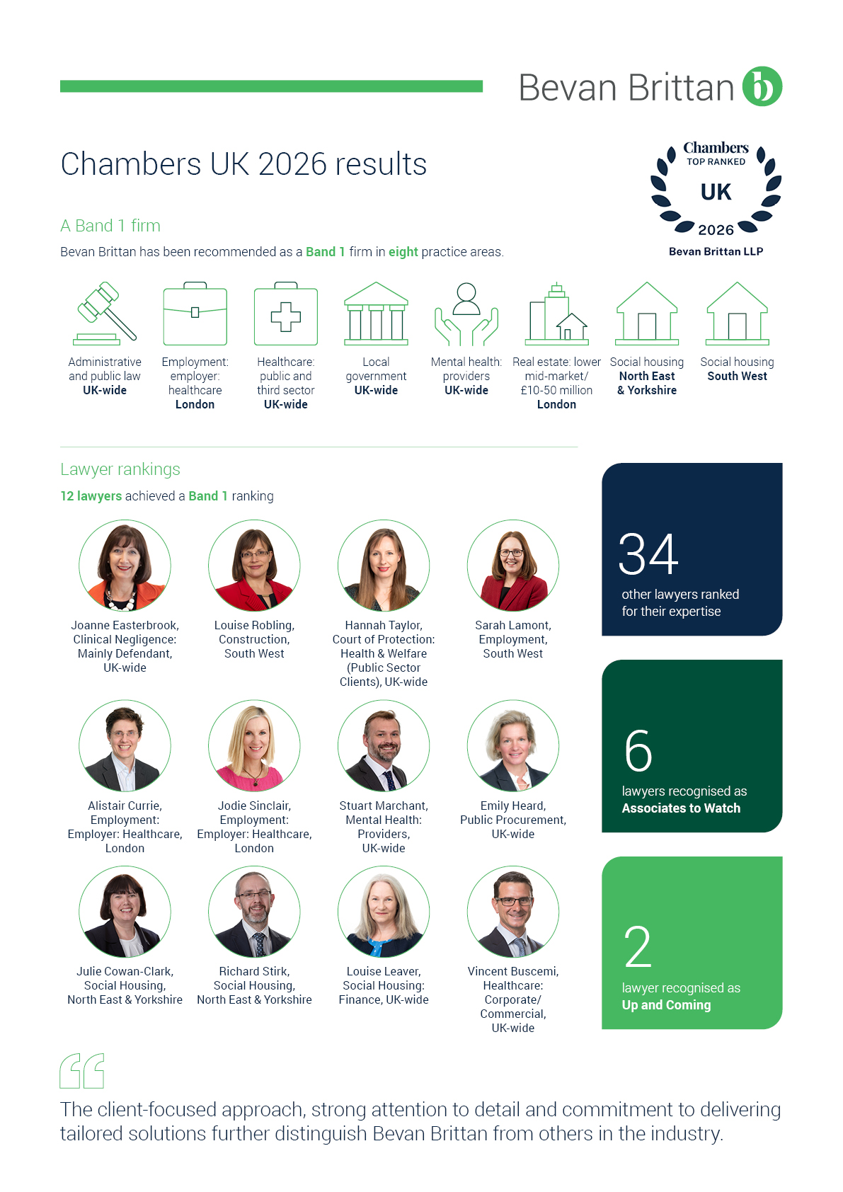 Duncan Weir, Managing Partner at Bevan Brittan, commented: “These results are a clear indication of the quality, consistency and dedication shown by our teams across the UK. Achieving and maintaining top-tier rankings – both individually and across our practice areas - highlights the commitment and expertise of our lawyers, as well as the continued trust our clients place in us.